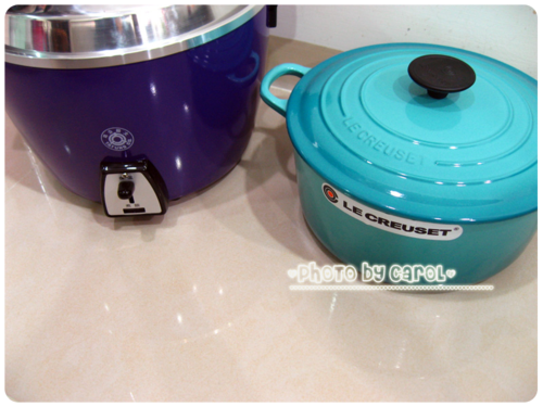 來張紫色大同電鍋與Le Creuset加勒比海藍合照唄,LC也有出紫色的,可惜再買的話我會被老公剝皮吧!